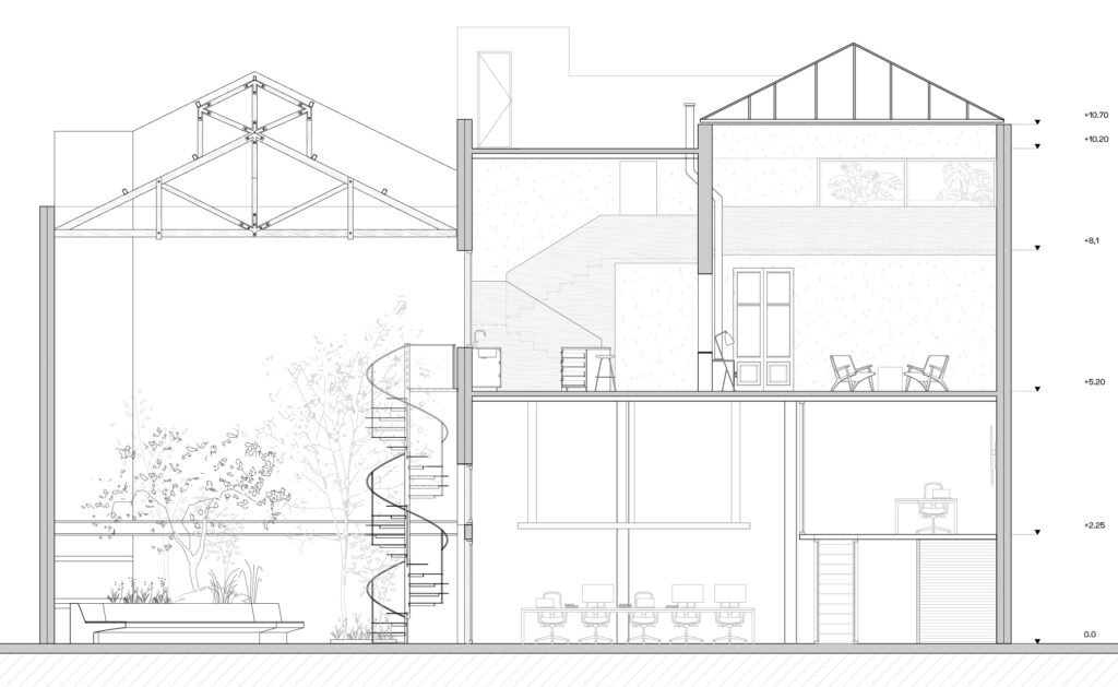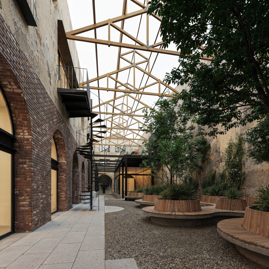 Ubicada en el casco histórico de Montevideo, esta intervención en un edificio de Grado 2 de protección patrimonial busca revitalizar la preexistencia mediante un diálogo entre épocas. El proyecto pone en valor elementos originales como sus imponentes claraboyas y muros de piedra, integrando nuevas estructuras metálicas y espacios verdes que oxigenan la planta. El resultado es una arquitectura híbrida donde la memoria urbana y la vida contemporánea conviven, transformando un espacio del siglo XIX en un motor cultural y funcional actual.