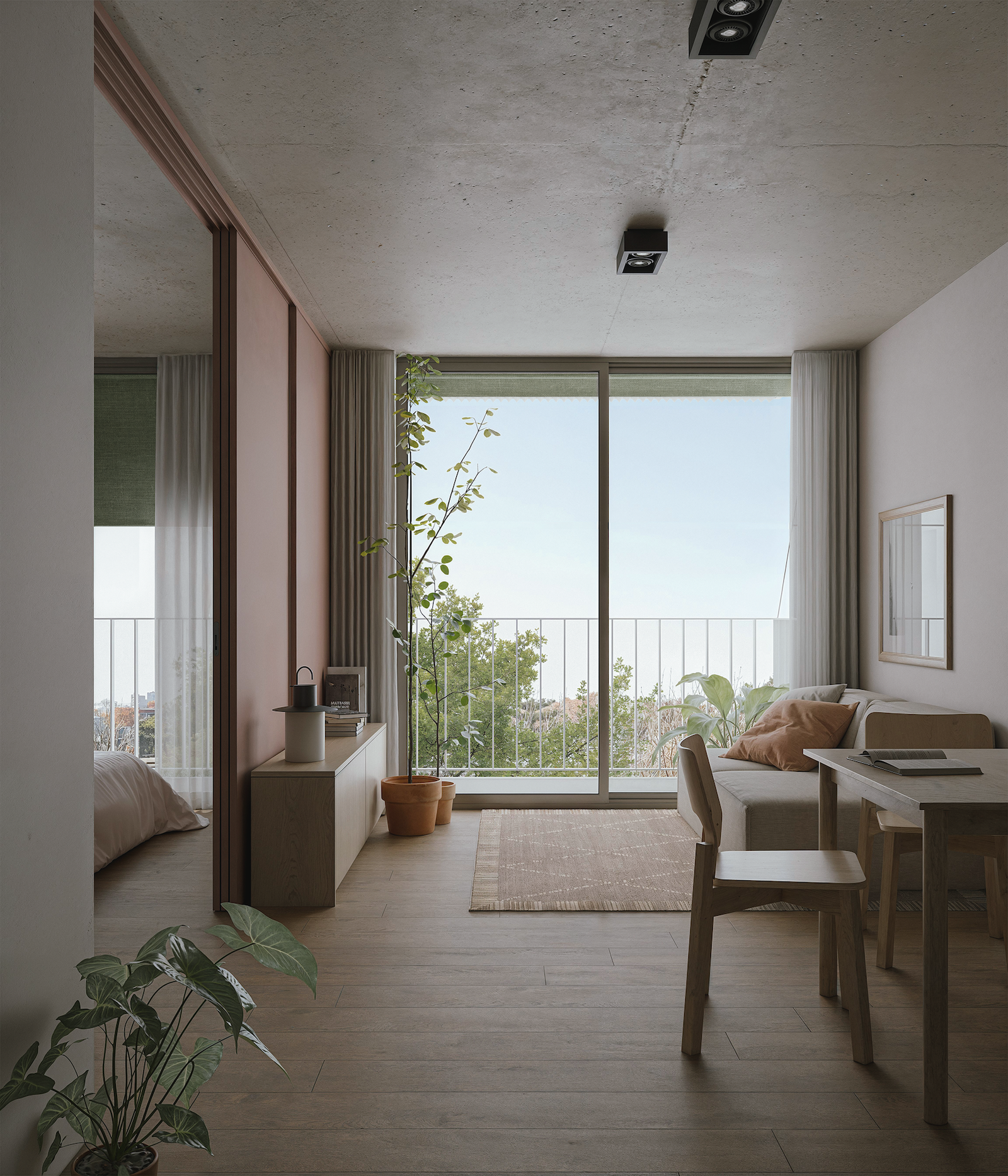 Ubicado en el corazón de La Blanqueada, este edificio de viviendas destaca por su fachada rítmica de balcones profundos y parasoles textiles que regulan la luz y la privacidad. El proyecto propone una planta baja libre y permeable, conectada a un patio jardín que promueve el encuentro vecinal. Los interiores, de estética contemporánea y hormigón visto, ofrecen espacios flexibles y luminosos que se adaptan a diversas configuraciones familiares, consolidando una propuesta de densidad urbana sensible y humana.